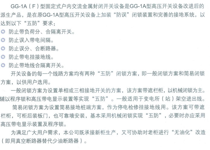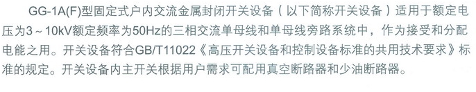 GG-1A型固定式戶內(nèi)交流金屬封閉開關(guān)設(shè)備